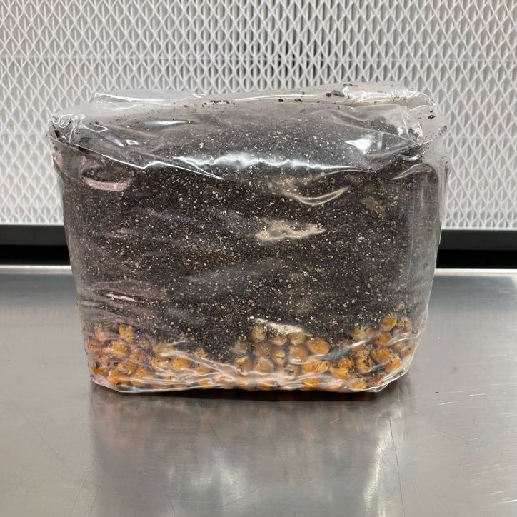 All-in-one grow bag combining sterilized corn and enriched substrate for easy mushroom cultivation. Includes injection port.